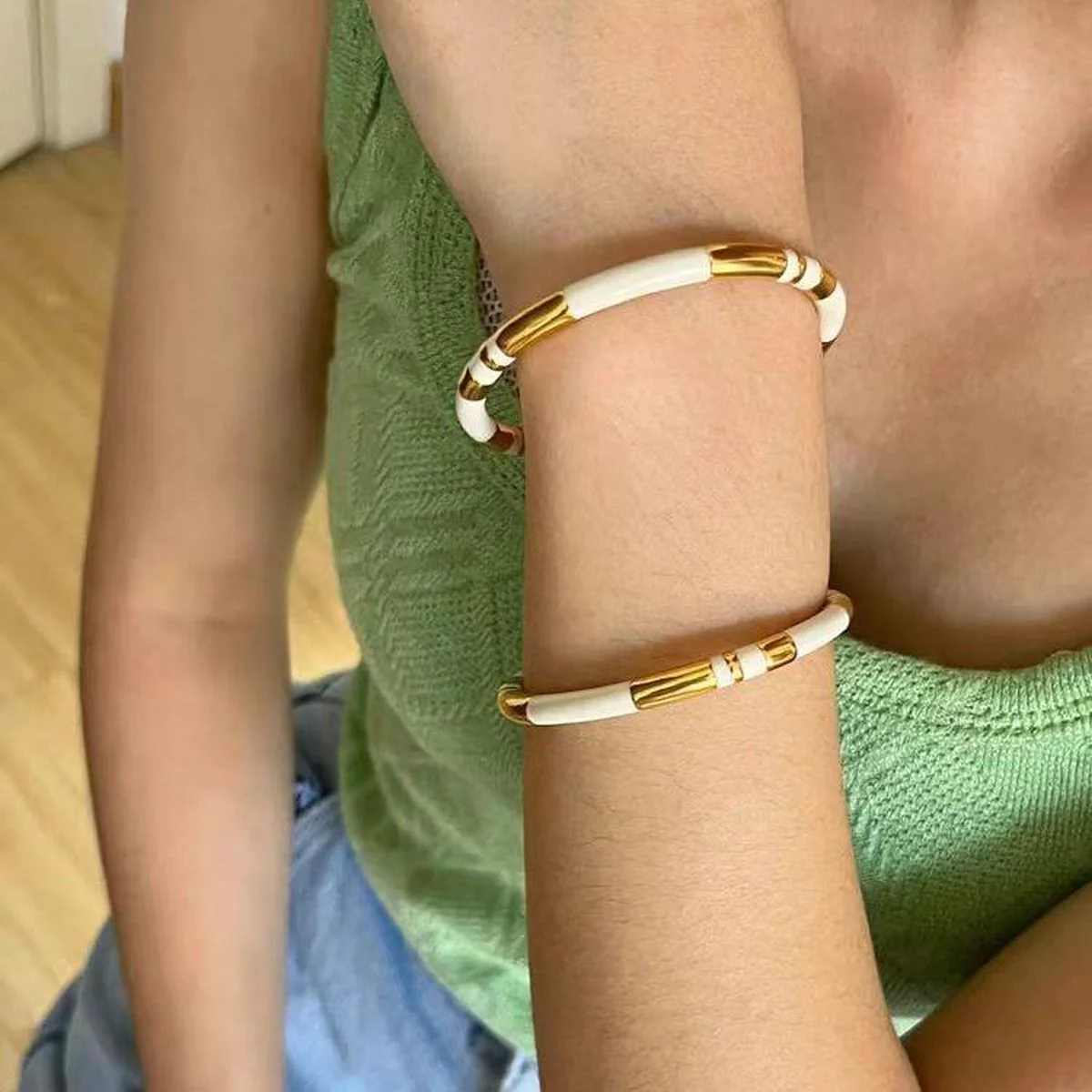 Elevate your accessory game with our White Bangle Bracelet, a timeless piece that exudes elegance and sophistication. Featuring a smooth, polished white finish, this bangle offers a sleek, minimalist design that pairs beautifully with any outfit. Whether you’re looking to add a touch of brightness to your everyday look or seeking the perfect finishing touch for a special occasion, this bracelet is the ideal choice.