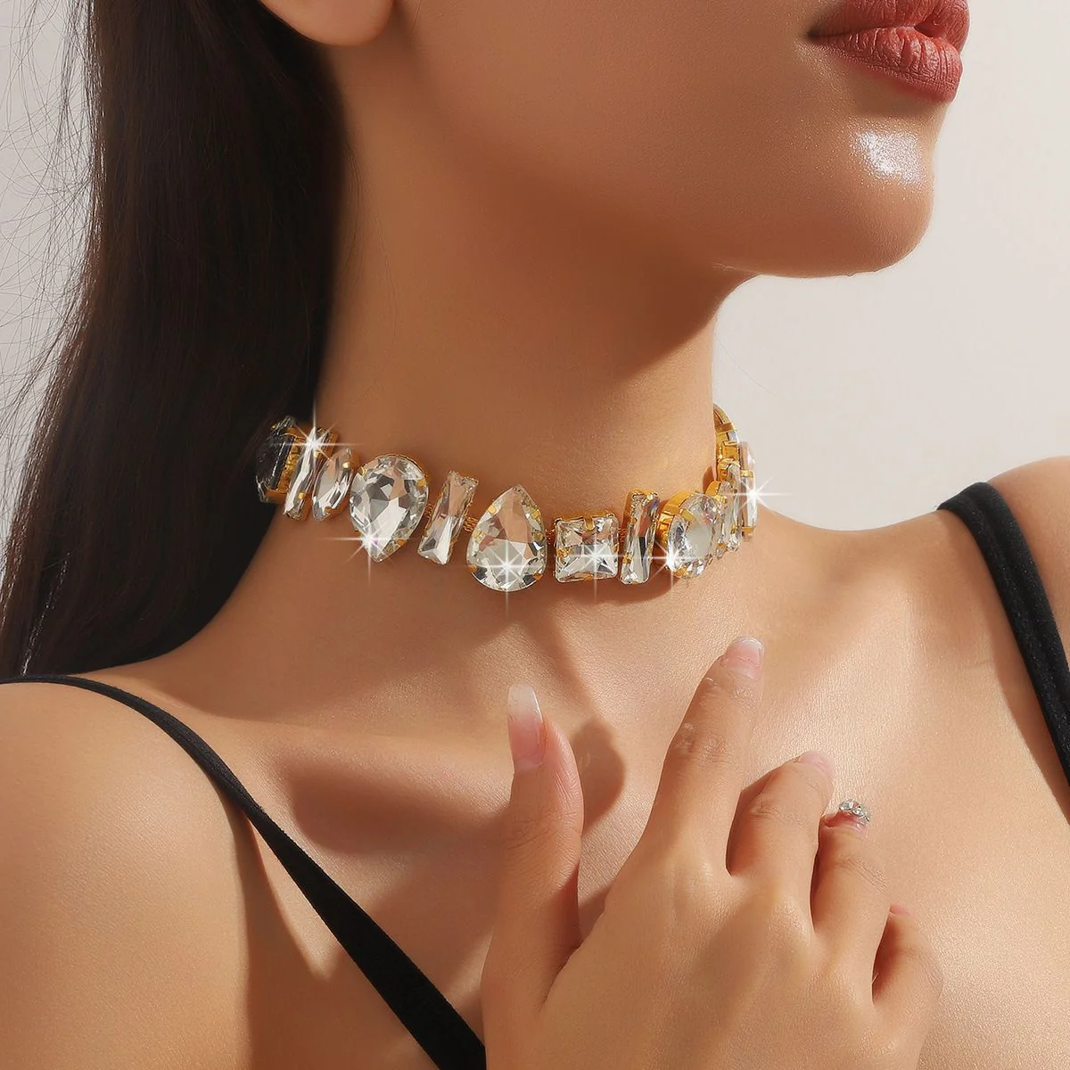 A Crystal Choker Necklace is a stylish and elegant piece of jewelry that features a band or chain worn tightly around the neck, adorned with sparkling crystals. This necklace combines both luxury and sophistication, with the clear, radiant crystals adding a touch of glamour to any outfit. The crystals used can vary in size, shape, and color, ranging from small, subtle diamonds or gemstones to larger, more dramatic pieces.