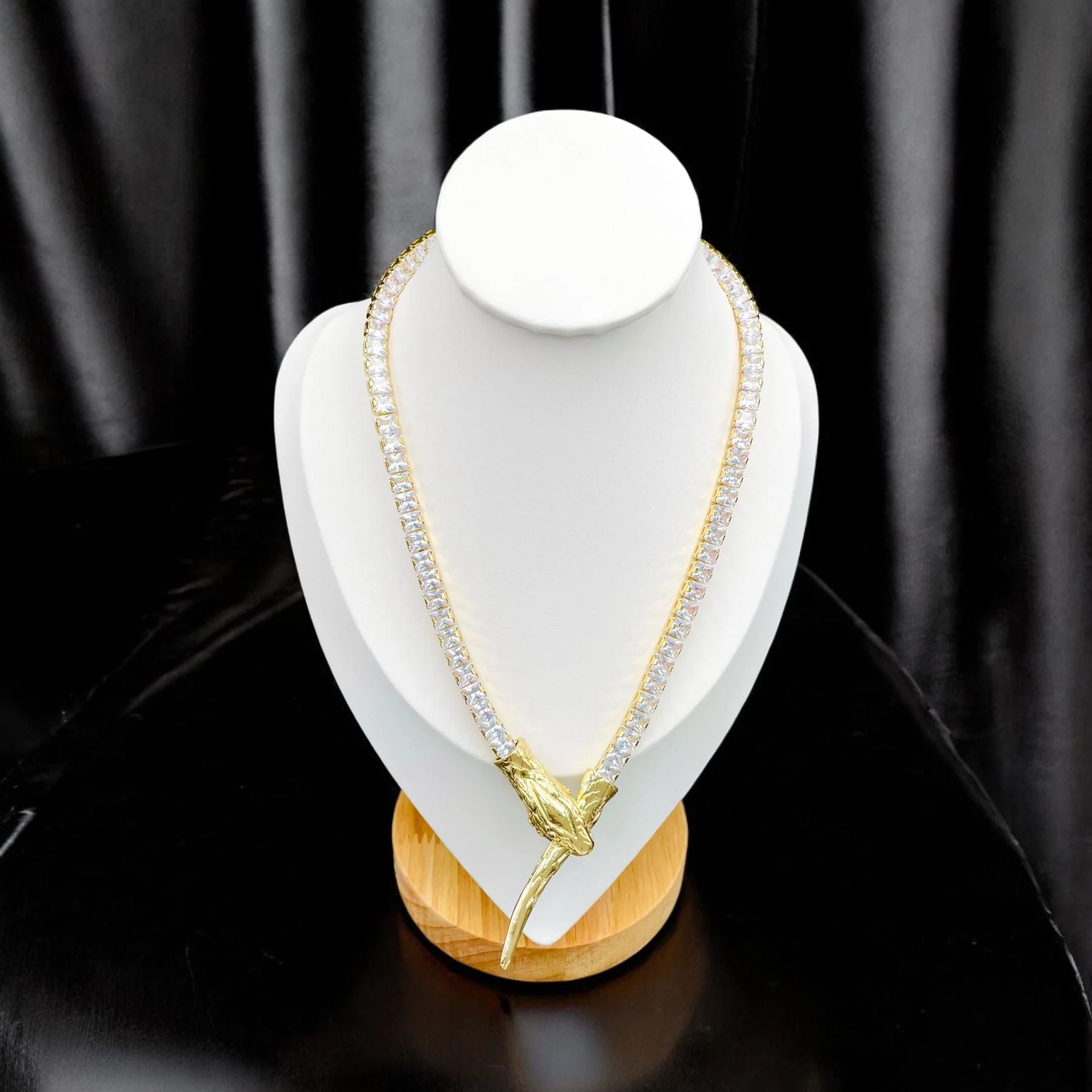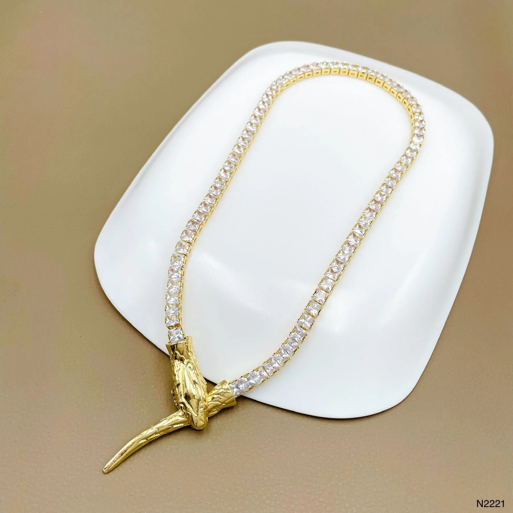 A Crystal Neck Wrap Necklace is a type of jewelry that combines elegance and a modern twist, typically featuring crystals or gemstones in a design that wraps around the neck. The design can vary widely, but the essence of the piece is a versatile and eye-catching necklace that often drapes or coils around the neck, creating a layered or "wrapped" effect.