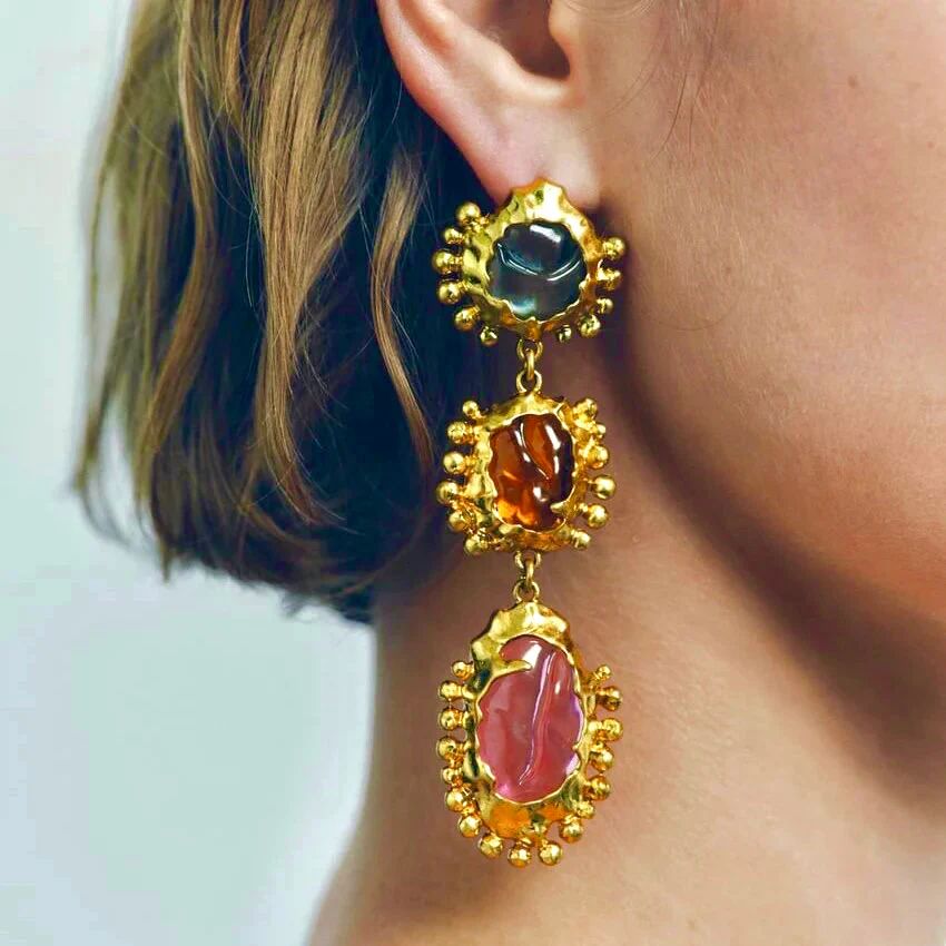 Make a bold and vibrant statement with our Multi-Color Dangler Earrings. Designed to capture attention, these earrings feature an array of colorful beads or gems that dangle beautifully, creating a playful and eye-catching look. The mix of hues brings a fun, dynamic energy to any outfit, making these earrings perfect for adding a pop of color to your everyday look or complementing a special occasion ensemble.