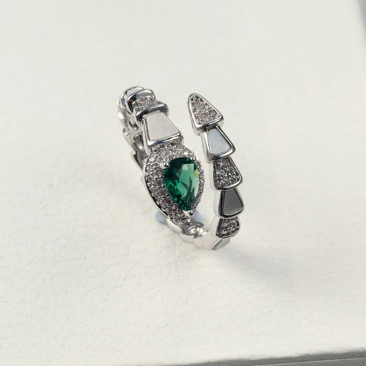 Whether set with minimalistic accents or with elaborate detailing, the Emerald Silver and White Ring can easily become a signature piece in any jewelry collection, adding both color and sophistication.