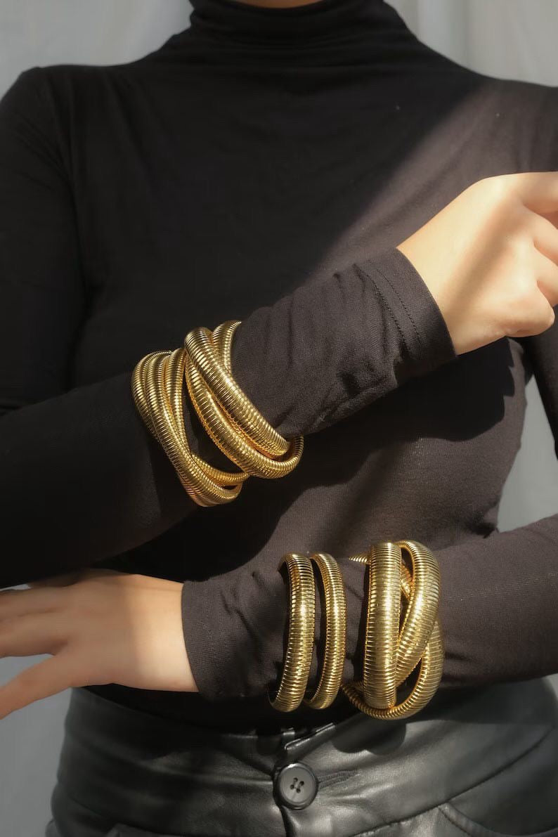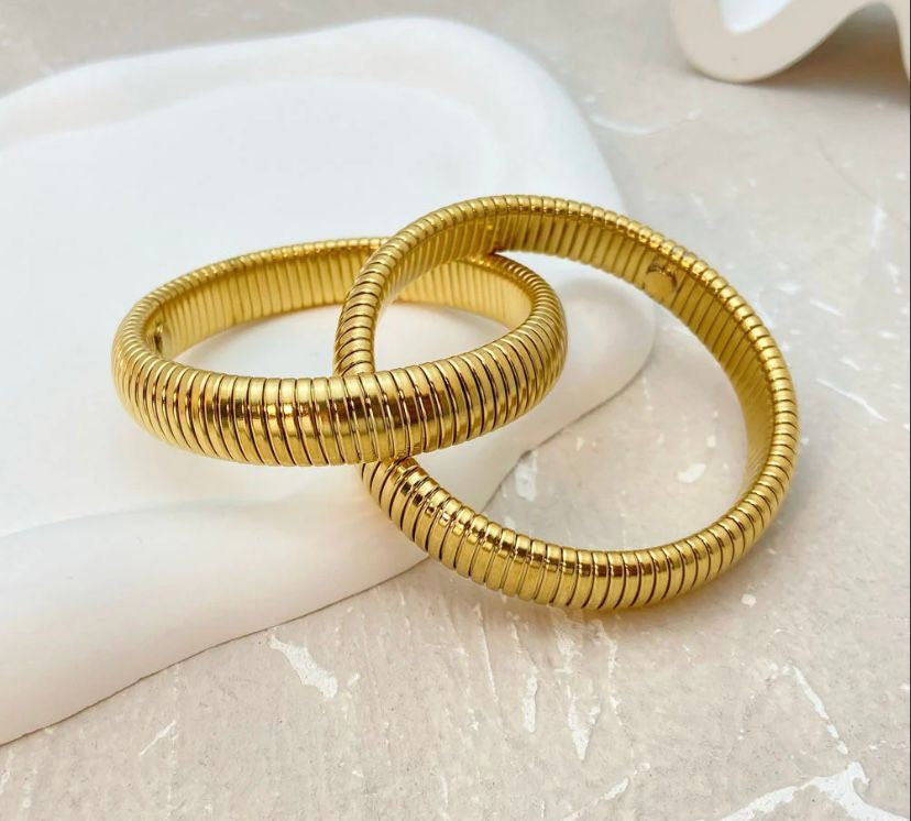 Double bangles are quite popular in various cultures, particularly in South Asian and Middle Eastern fashion, but they’ve also made their way into modern, minimalist jewelry styles. They can be made from various materials, such as gold, silver, or even acrylic, and may feature simple sleek designs or more elaborate, embellished details.