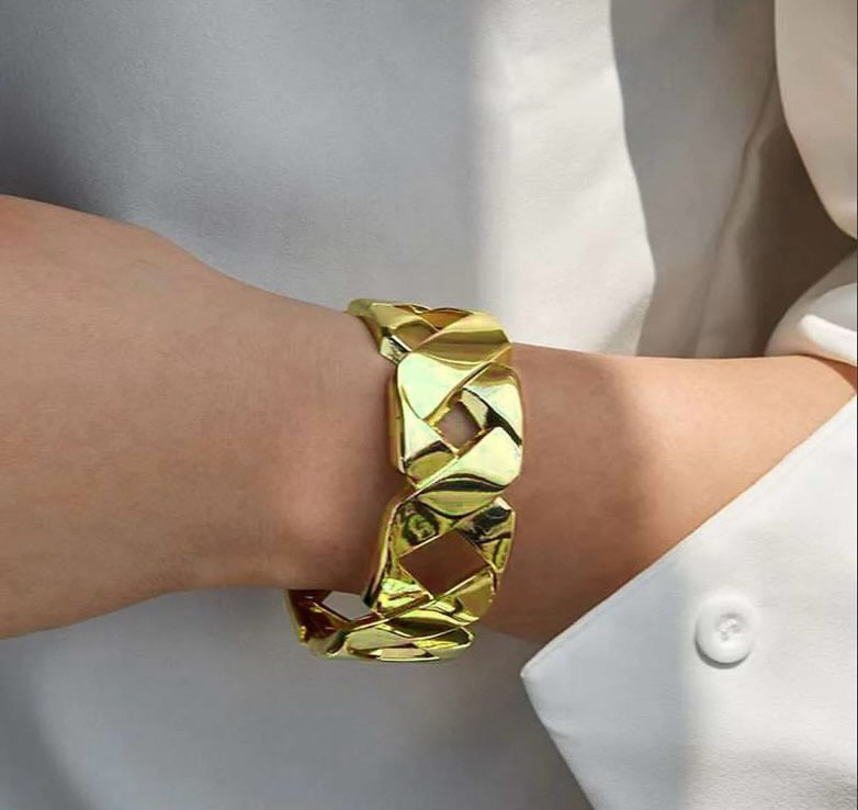 A linked cuff bracelet is a stylish and modern piece of jewelry that features a series of interconnected links or segments, often designed to form a continuous, flexible structure around the wrist. Unlike traditional cuff bracelets, which are typically a single solid piece, a linked cuff has multiple parts that are either hinged or connected to each other, offering a more dynamic and adjustable fit. These bracelets can range from sleek, minimalist designs to more intricate, ornamental styles, often made from materials like metal, leather, or even beads. A linked cuff bracelet provides both comfort and visual interest, making it a versatile accessory for both casual and formal occasions.