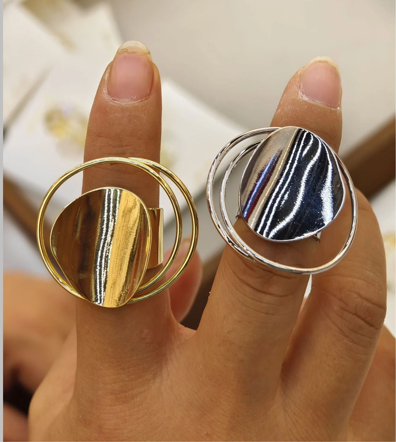 Discover the perfect blend of modern elegance and artistic design with our Geometric Round Ring. Featuring a clean, circular shape with bold geometric accents, this ring is a statement piece that brings a contemporary touch to any outfit. Its minimalist design, highlighted by sharp lines and smooth curves, offers a sophisticated yet edgy look that’s perfect for both casual and formal occasions.