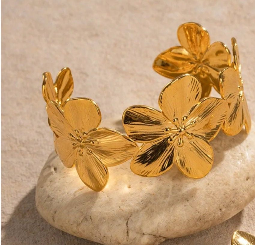 A Phool Kada bracelet is a traditional piece of jewelry that features floral designs, typically made with intricate craftsmanship. "Phool" means "flower" in Hindi, and "Kada" refers to a bangle or bracelet. This bracelet often showcases a floral motif that is either engraved or raised, giving it a beautifully ornate and feminine appearance.