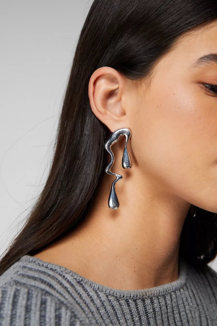 Crafted from high-quality silver, these earrings are lightweight and comfortable, perfect for all-day wear. Whether you're dressing up for a special occasion or adding a bold accent to your everyday look, the Silver Melted Earrings are a statement piece that complements any outfit.