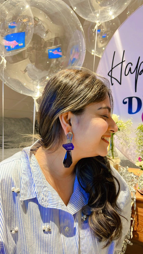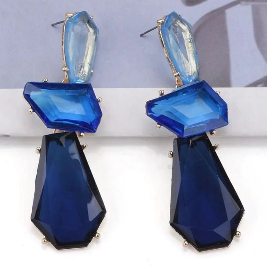 Add a pop of vibrant color and elegance to your jewelry collection with our Blue Crystal Earrings. Featuring stunning blue crystals that catch the light beautifully, these earrings offer a timeless, luxurious look that enhances any outfit. The rich blue hue adds a touch of sophistication, while the sparkling crystals bring a radiant glow, making them perfect for both special occasions and everyday wear.