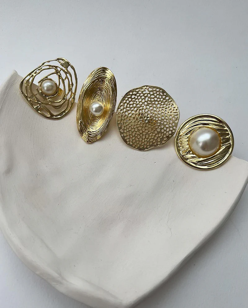 A pearl ring stamped typically refers to a ring that features a pearl as its main stone, with a stamp that provides information about the metal used, or a brand or designer mark.