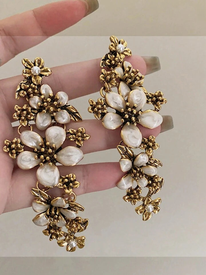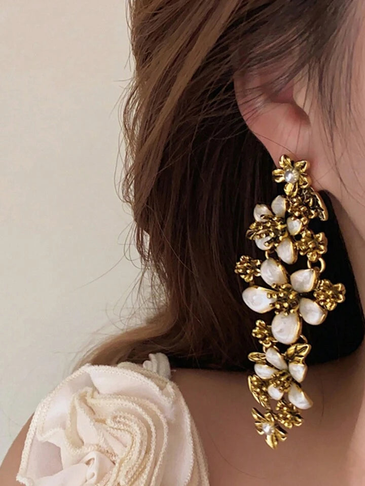White Flower DropDown Earrings