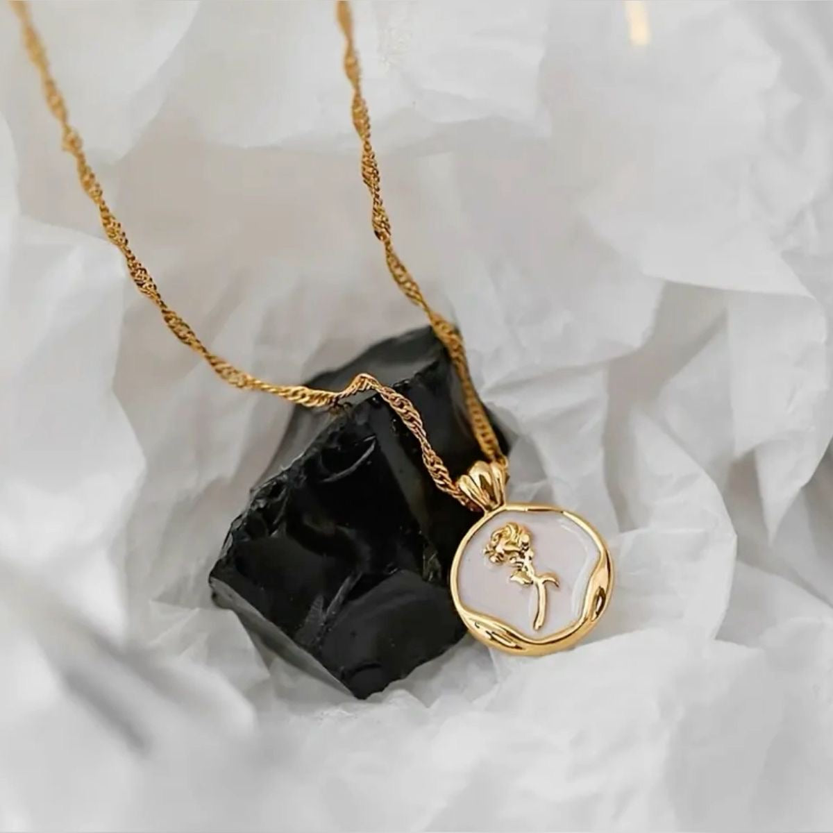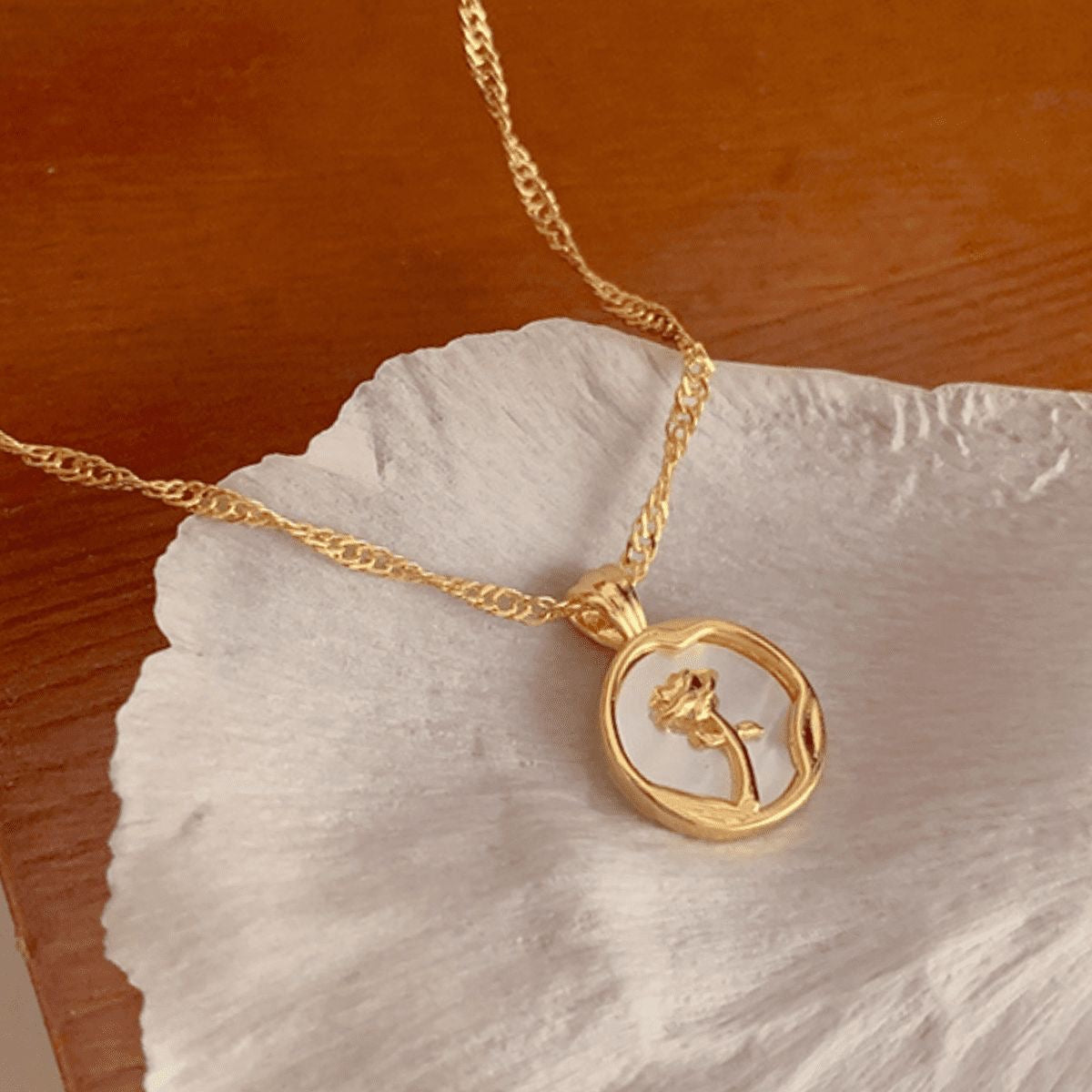 White Rose Pendant Necklace